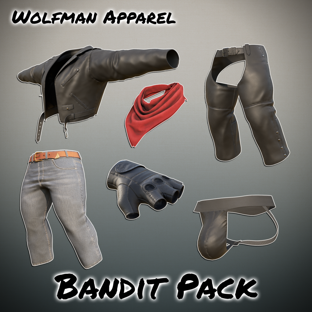 Leather Jacket, Chaps, Jeans, Gloves, Bandana, Jock - FBX files, Substance Files, Unitypackages